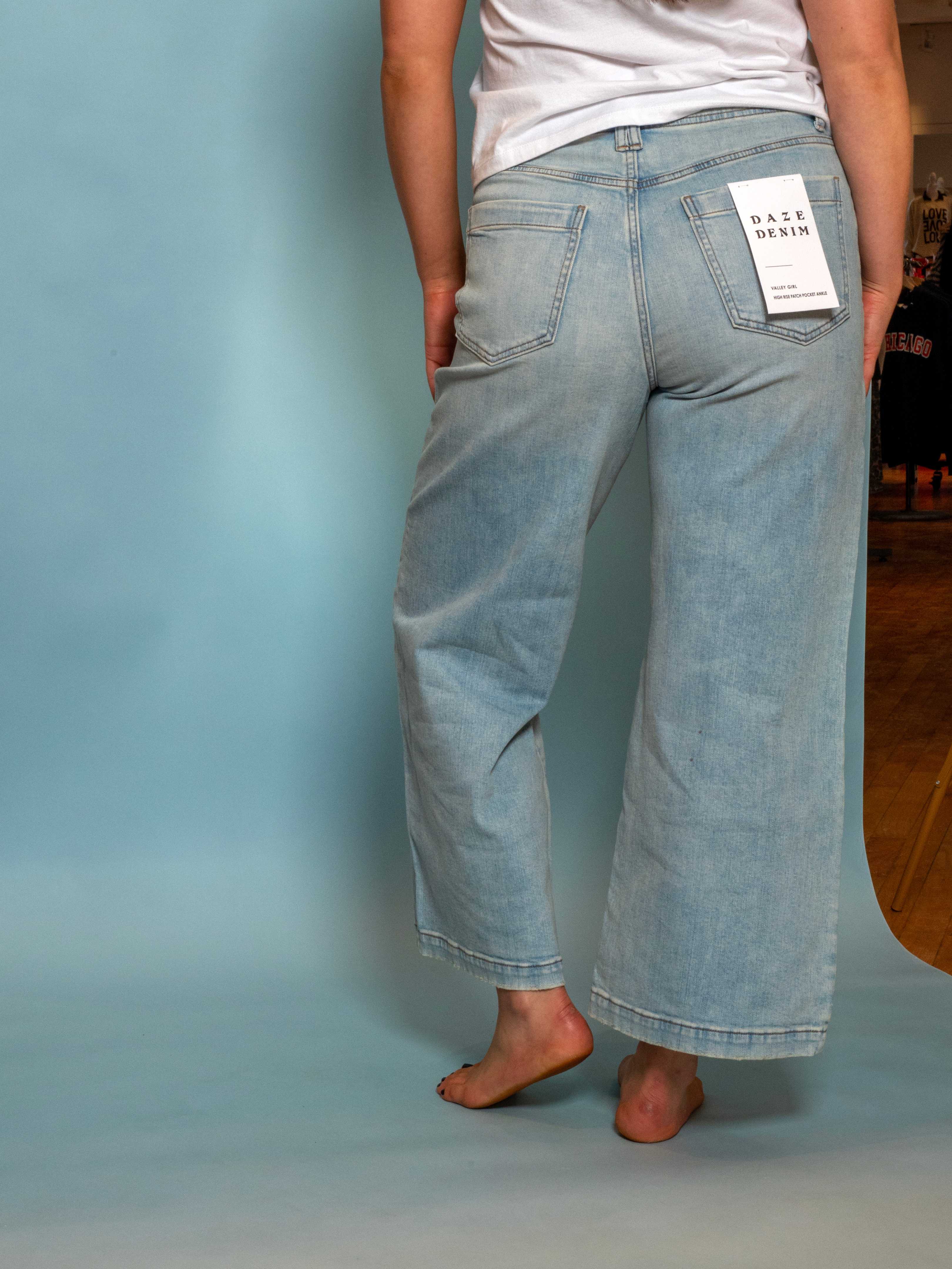 - Inspired by LA's hottest neighborhood, the Valley Girl in Romcom is a high rise wide leg featuring retro-inspired patch pockets and clean hems. This versatile blue jean is constructed from our Just Right fabric, a reliably flattering cotton blend that provides the perfect mix of rigid and stretch.