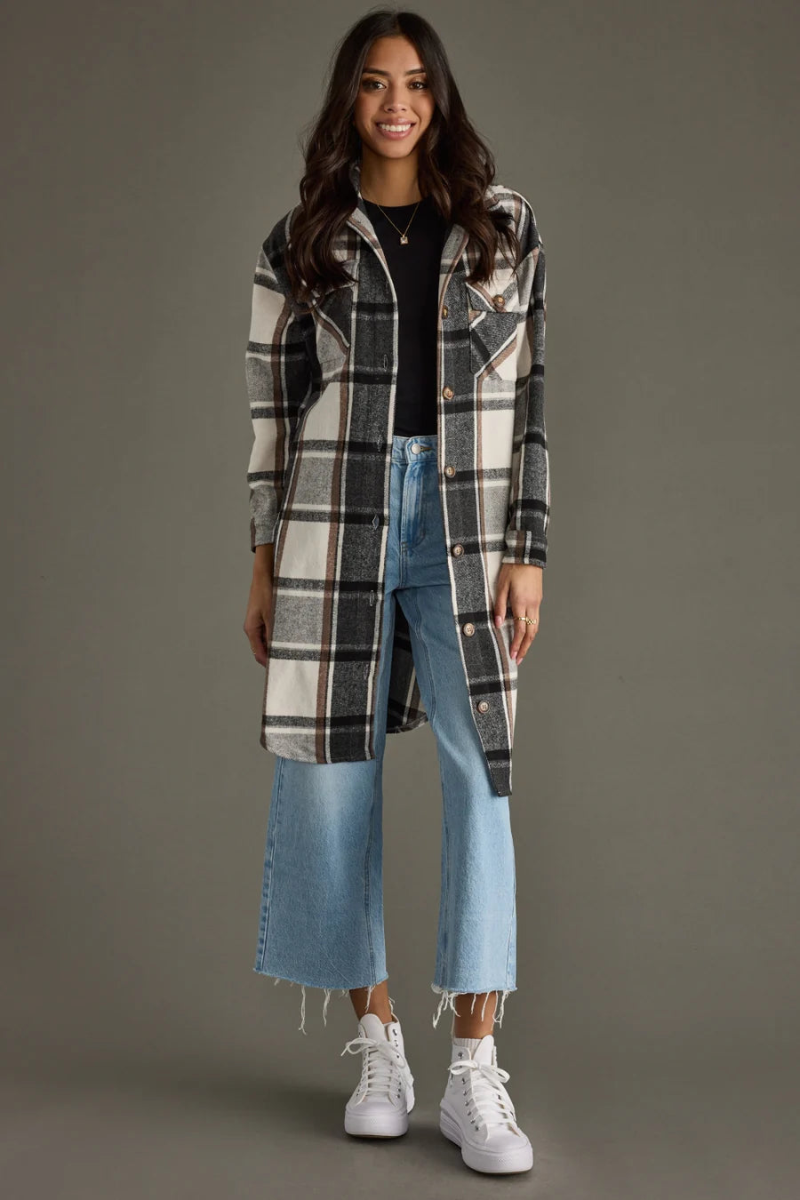 Black, Ivory, Brown Long Shacket