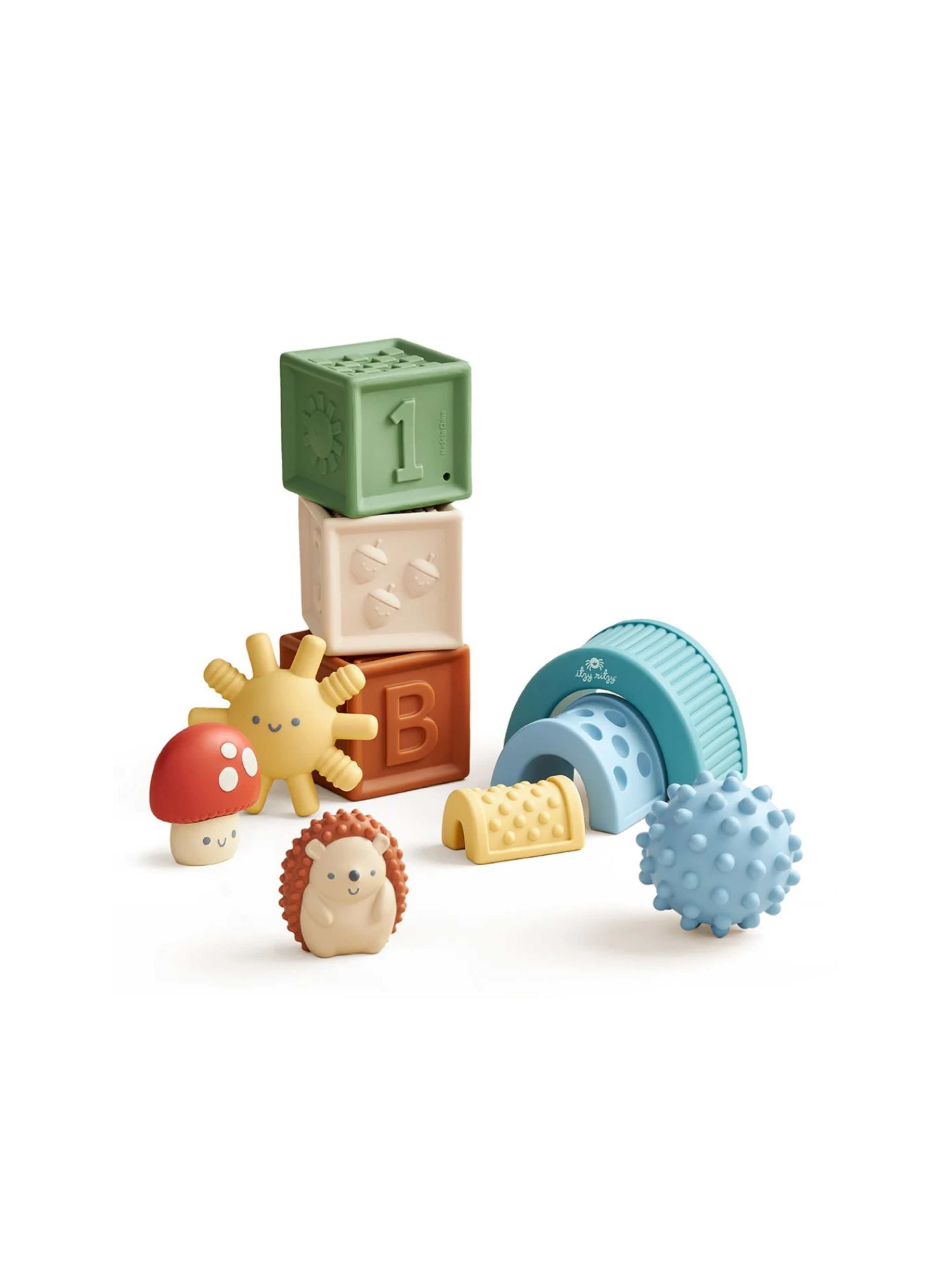 Build imagination from the ground up with Itzy Blocks™. This 10-piece play set features squishy-soft blocks and textured characters to stimulate the senses and spark creative storytelling.