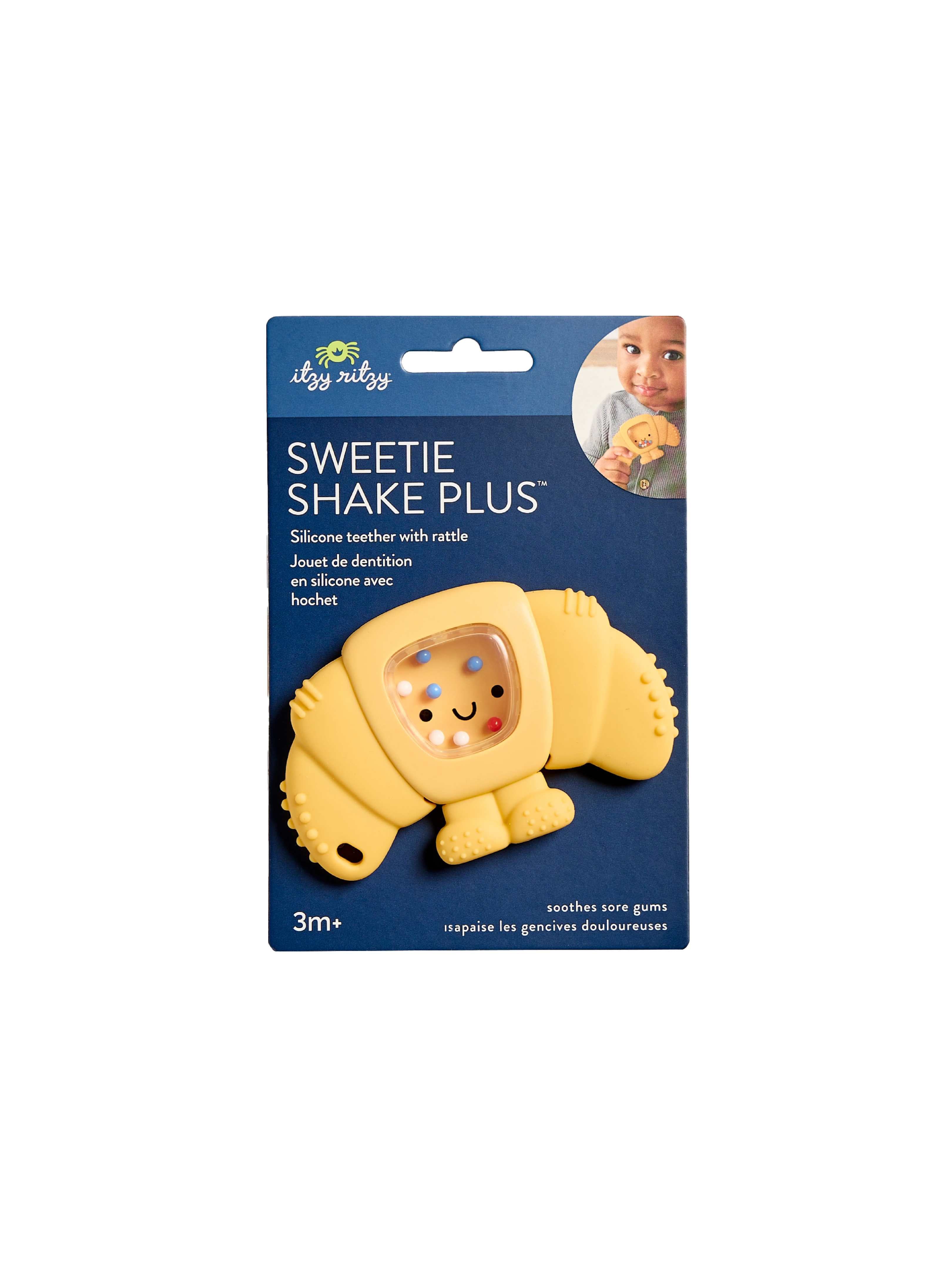 Shake, rattle & teethe! Get ready for triple the fun with the Sweetie Shake Plus™. The soft silicone teether, colorful dancing beads and gentle rattle sounds are perfect for sensory seekers tiny to toddler.