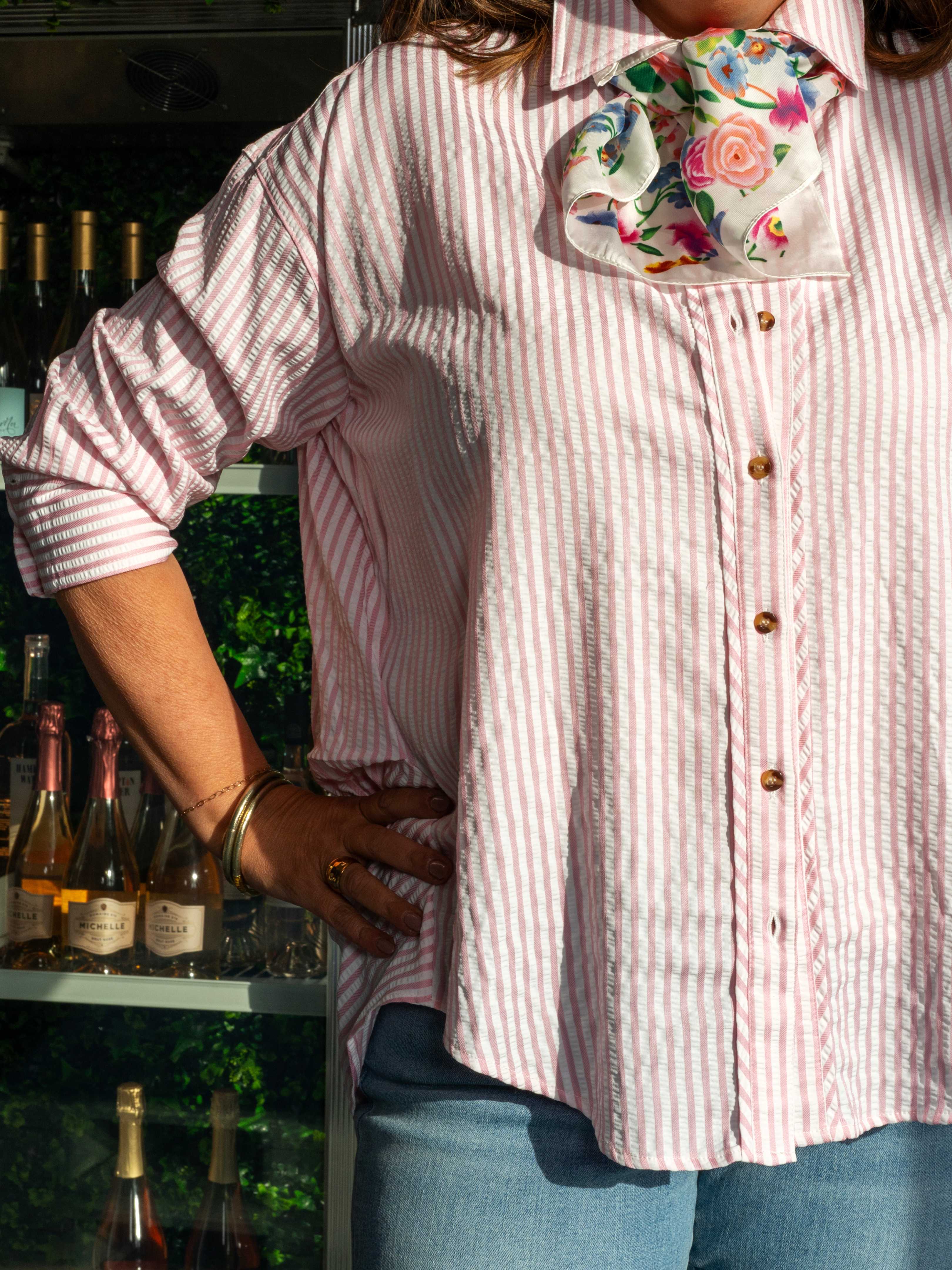 Stripey Button Down - Light Pink