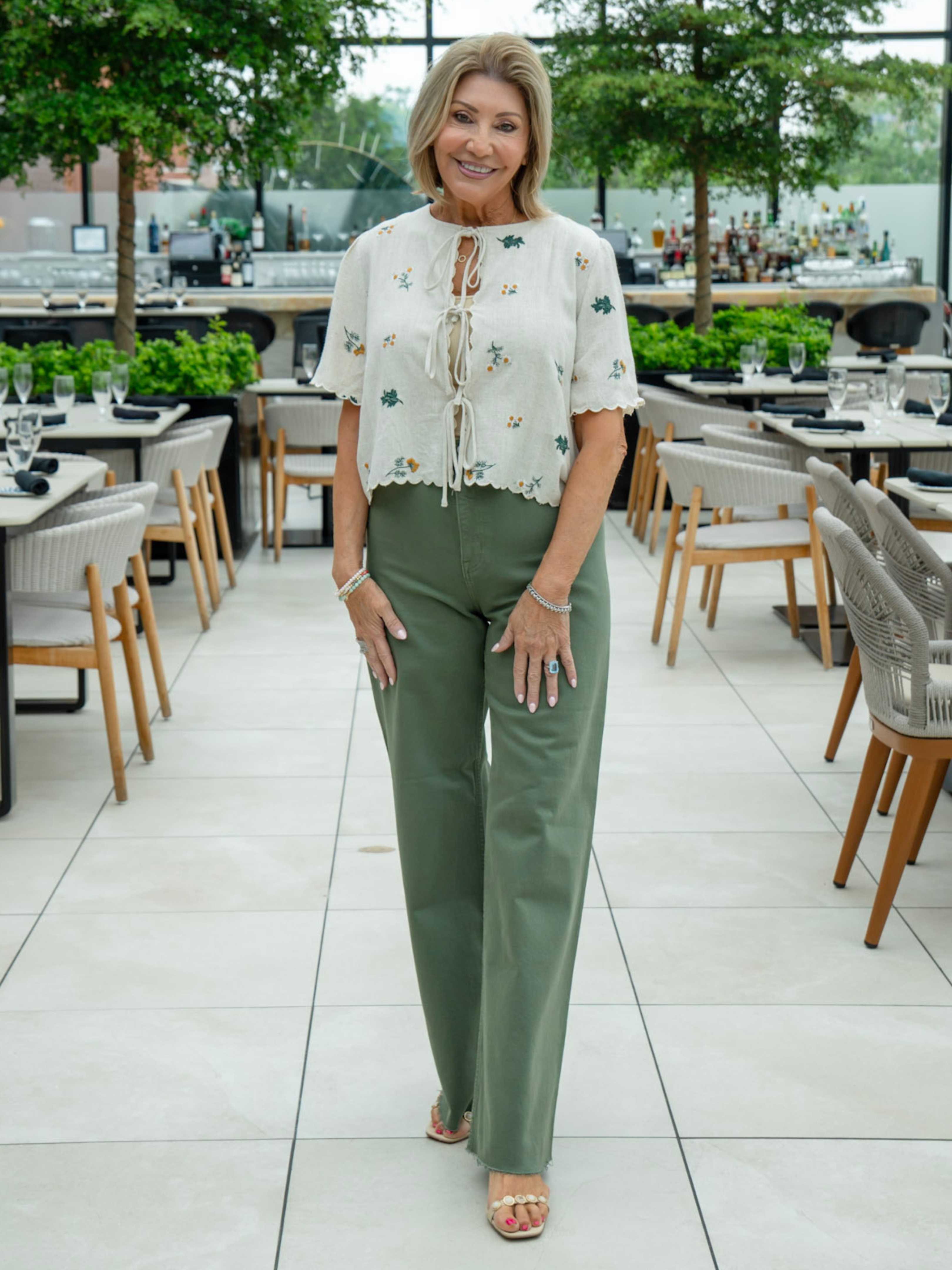 - High rise waist, with a wide leg silhouette and a cropped, ankle length hemline. Crafted from our signature comfort stretch denim, with a double stitched waistline and scissor cut hems.