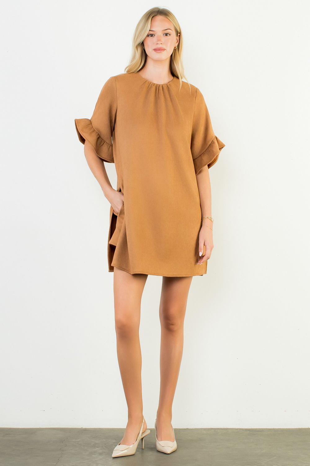 Sally Suede Romper Dress Camel
