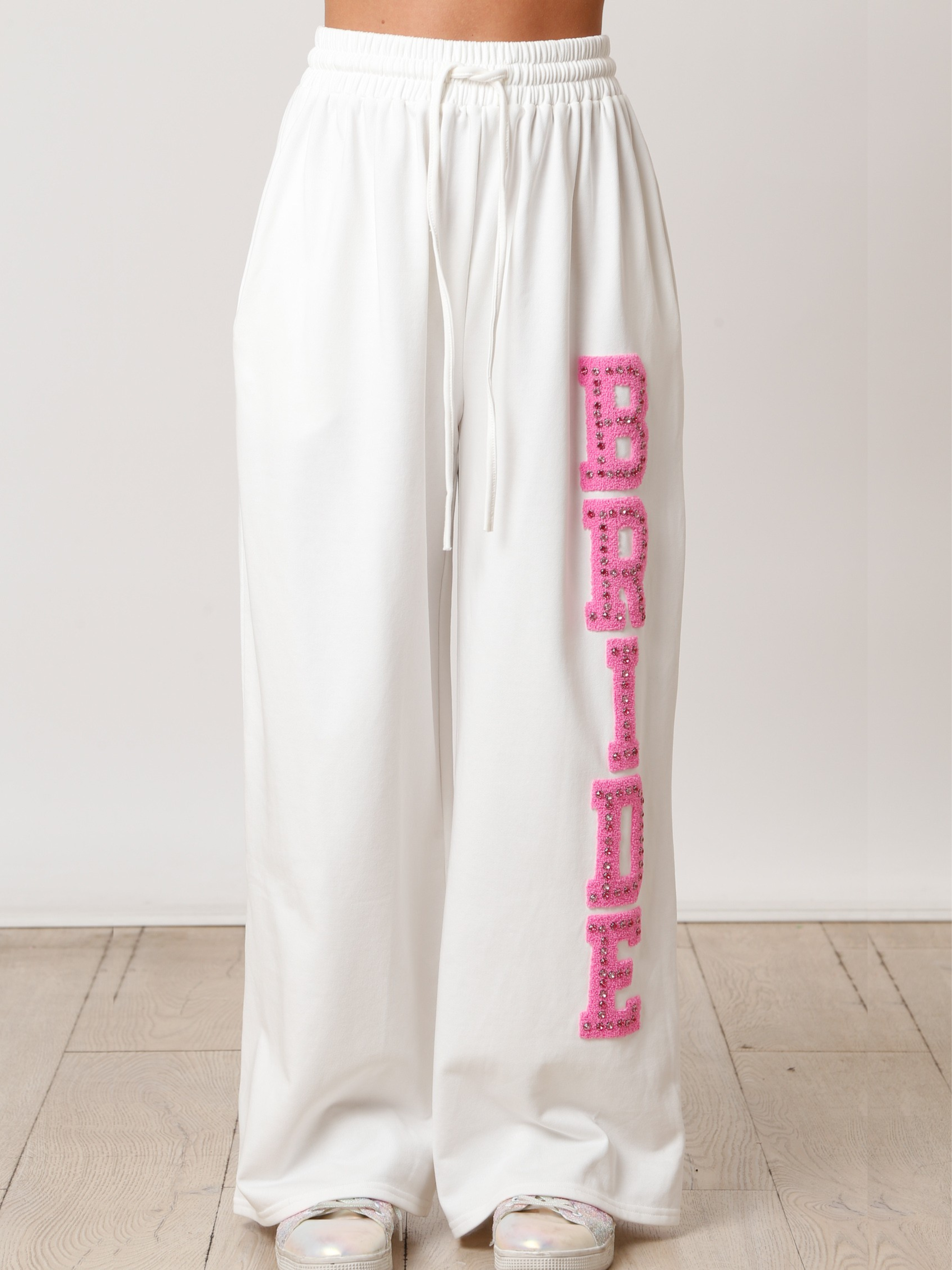 - 'Bride' lettering side embroidery with rhinestone embellishments