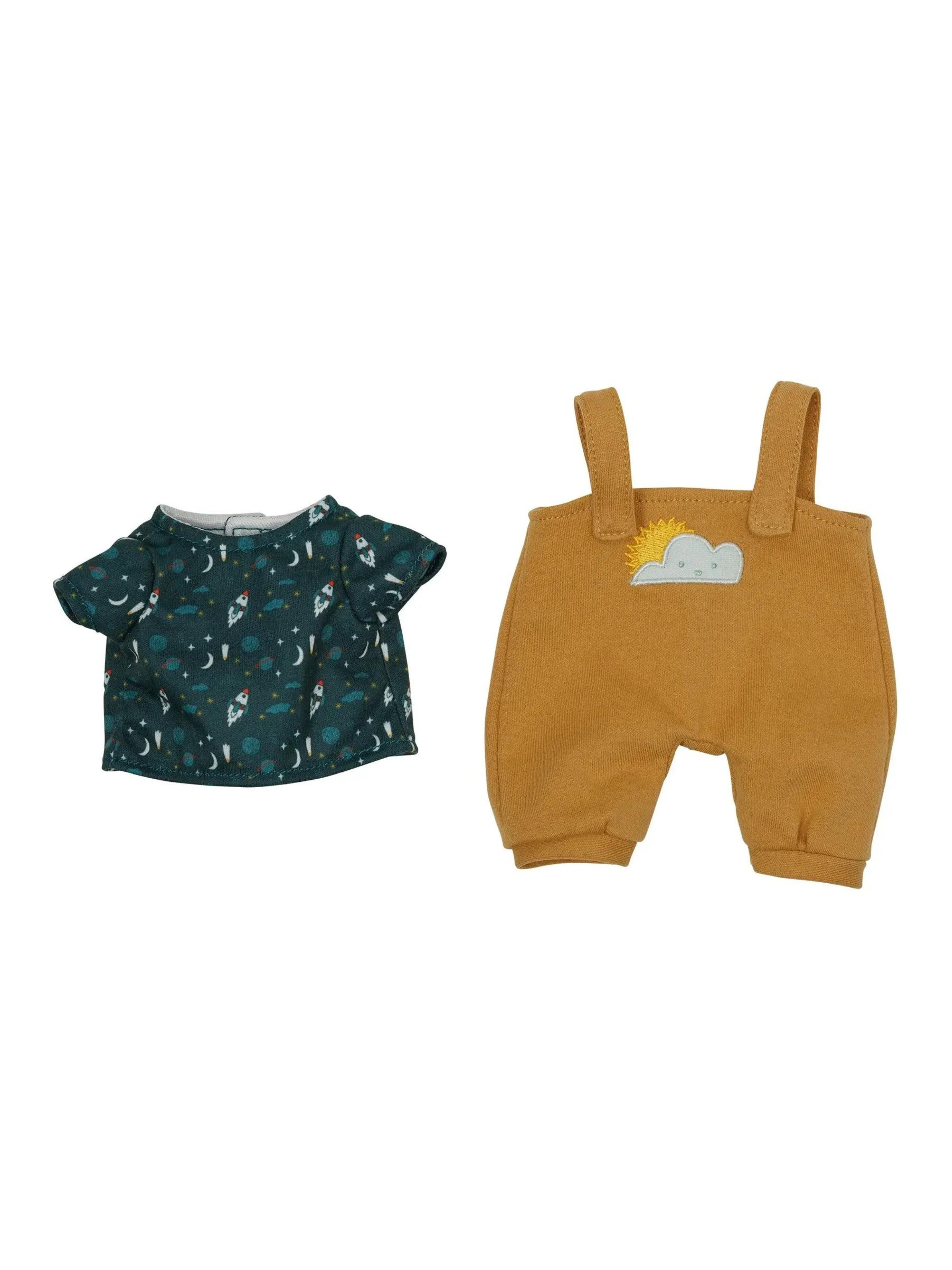 This adorable Wee Baby Stella outfit includes a space-themed printed T-shirt and overalls with a sun and cloud applique. It's the perfect addition to any Wee Baby Stella doll collection. Doll dress-up encourages nurturing and fine motor skill development.