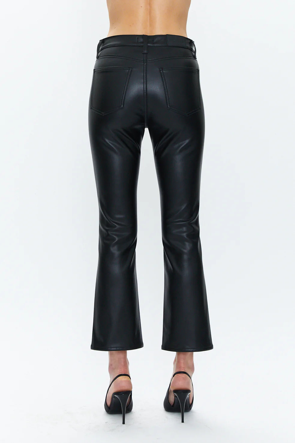 A sleek and chic pant in our buttery soft alt leather. In a boot cut fit, it hugs you from the hips to knee and flares out at the calf for a proportional effect. Accessorize with a belt and heels, or wear casual with a tee and sneakers.