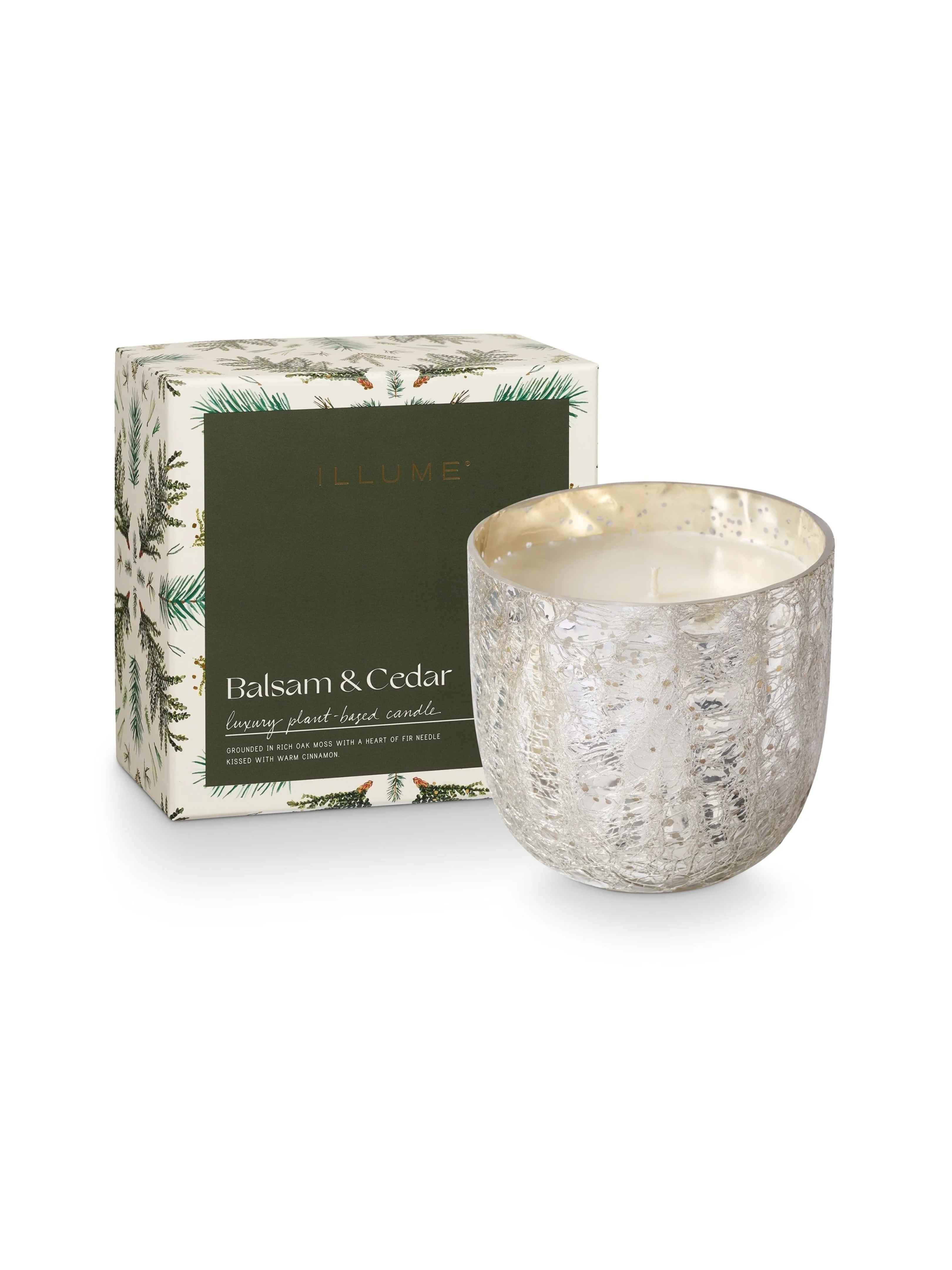 Our large crackle glass candle comes packaged in an illustrated keepsake box, perfect for gift giving.