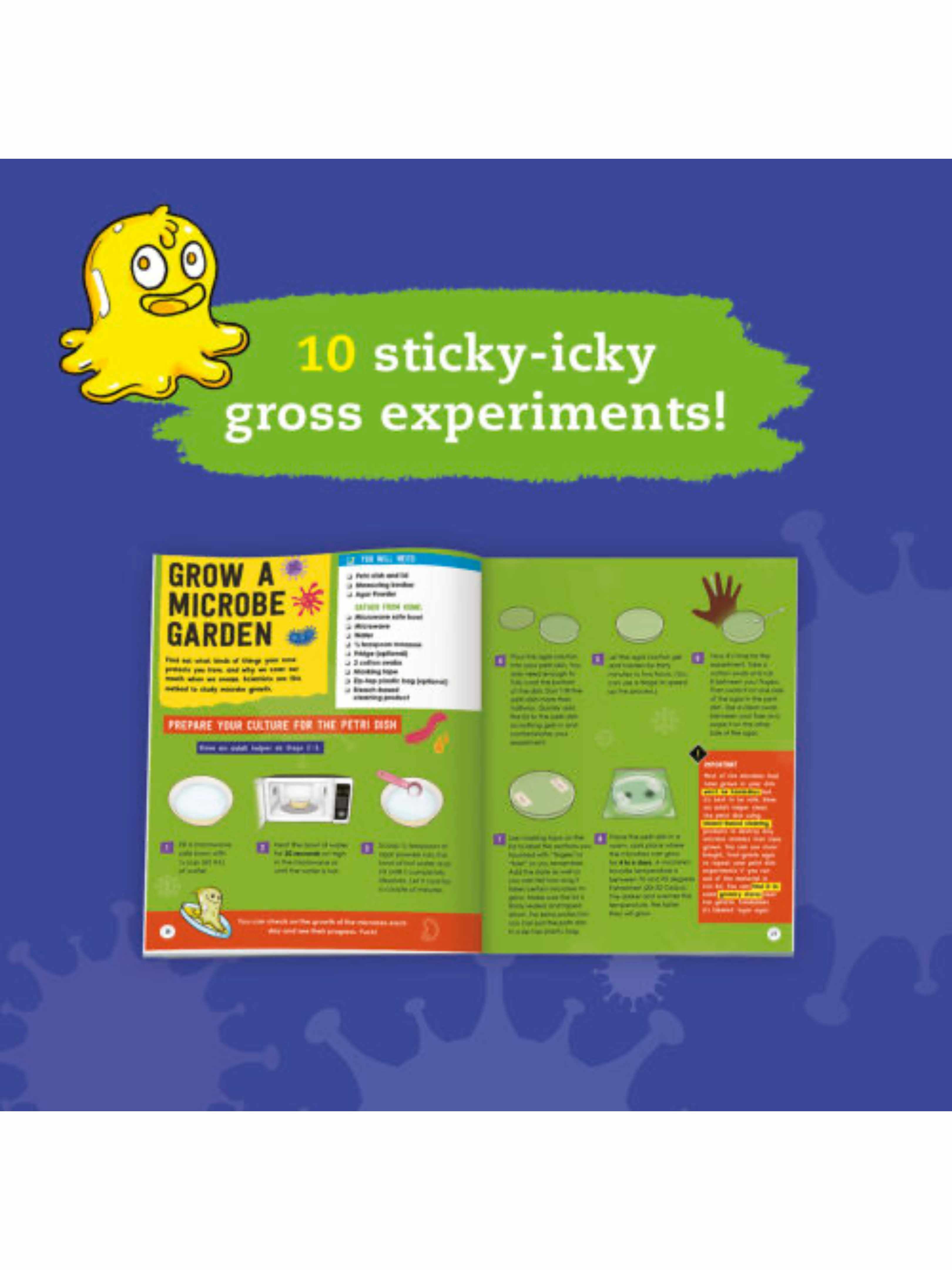 Squeeze slimy snots through a soft and squishy nose! Explore ten different experiments on sinus-based anatomy, make sense of scents with the power of smell, and even whip up a batch of boogers! Learn how snot, mucus, and nose hairs protect your body. Use the fake sneezer to find the best ways to stop a sneeze or cough, and grow germs in a safe petri dish culture. Finally, try out soapy science activities to observe how germs can be eradicated.