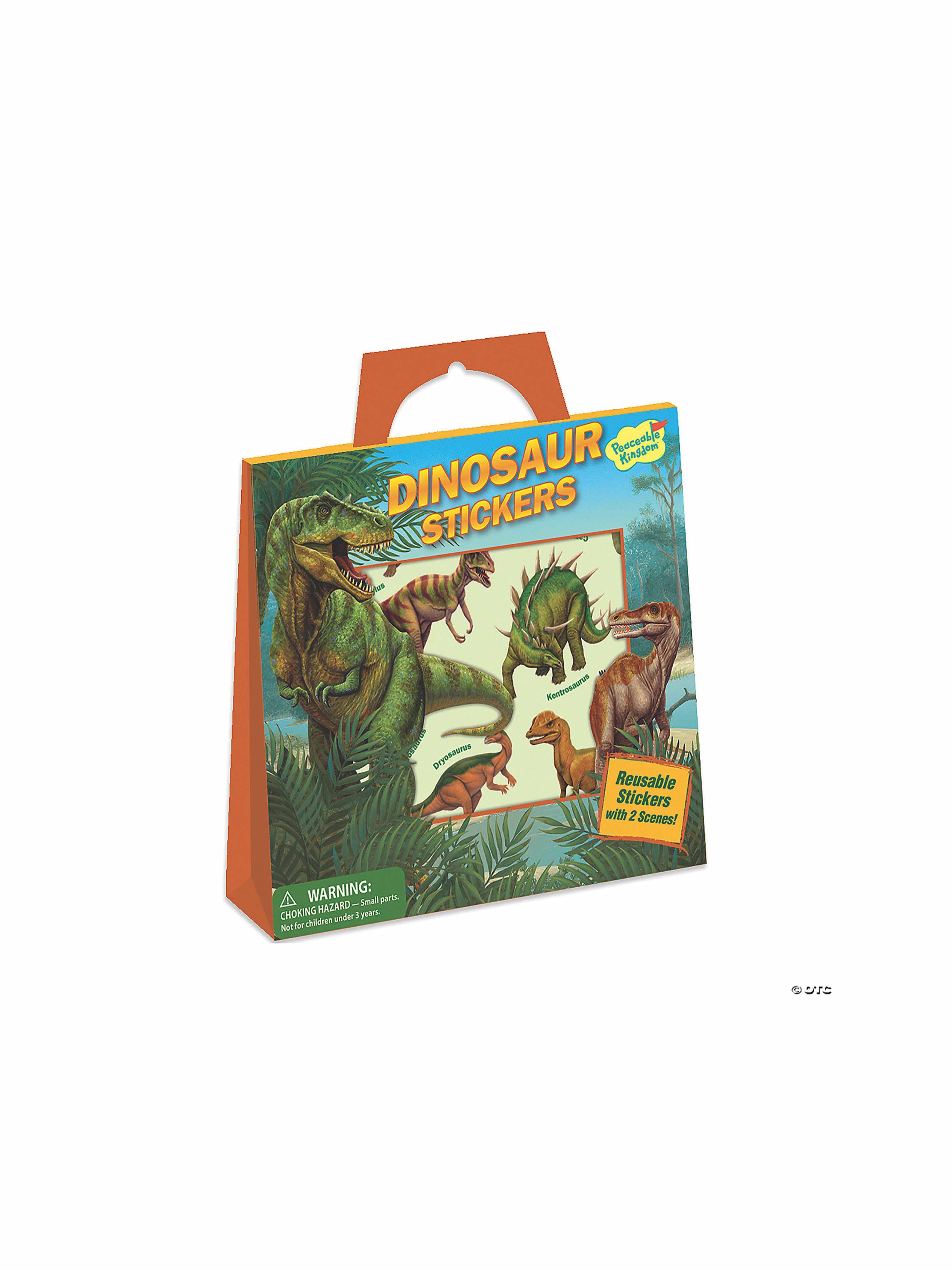Peel off these reusable dinosaur themed stickers and put them anywhere on your play scene! If the stickers lose their cling, just rub them in your hair to bring it back! Take this item in the car, on a plane, into a restaurant, or anywhere you might want an engaging activity that’s easy to start, easy to clean up, and reusable. Just toss everything back into the handy carry-along tote. Play for a few minutes or a few hours and learn hand-eye coordination and imaginative play!