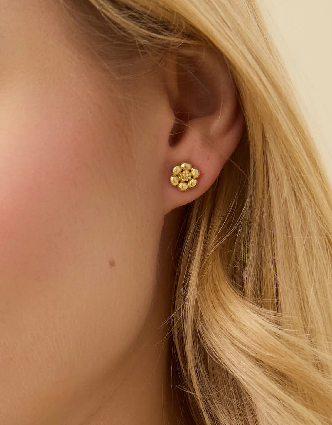 This must-have set features studded hoops and flower studs featuring refined details and hammered textures in 18kt matte gold plating. This lightweight Louisa Earrings Set is too good to pass up.