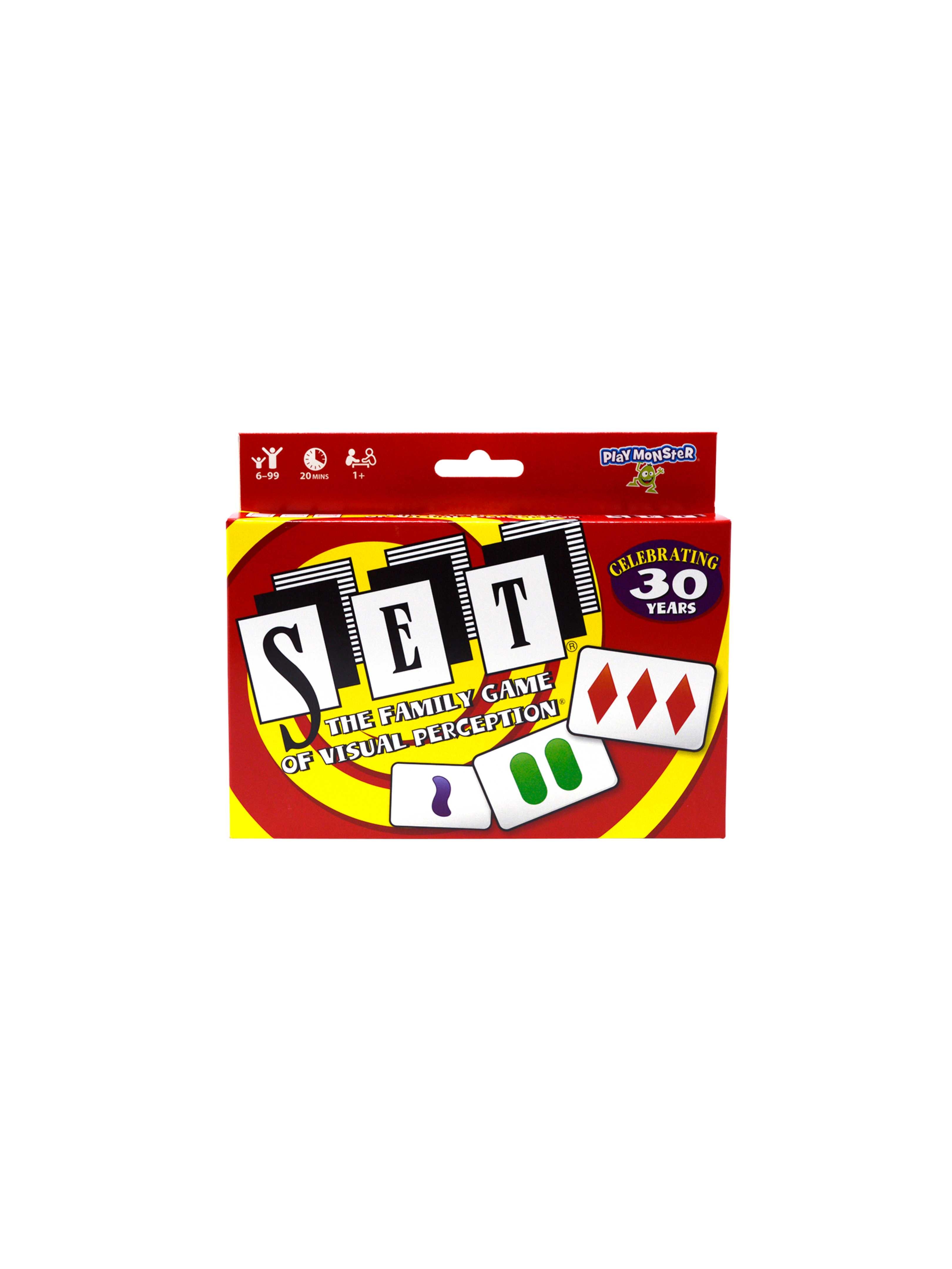 The award-winning game challenges players to race to find as many SETs as they can! A SET is three cards where each individual feature (color, shape, number and shading) is either all the same OR all different! The first player to see a SET calls out “SET” and grabs the cards—there are no “turns” and no luck here! And not only is it fast-paced fun, it also builds skills and exercises the brain! Because it has a rule of logic, and because players must apply this rule to the spatial array of patterns all at once, they must use both left brain and right brain thought processes! At the end of the game, the player with the most SETs wins! SET is prefect for a wide age range and number of players (including solo play!), and is a fun intergenerational game as well.