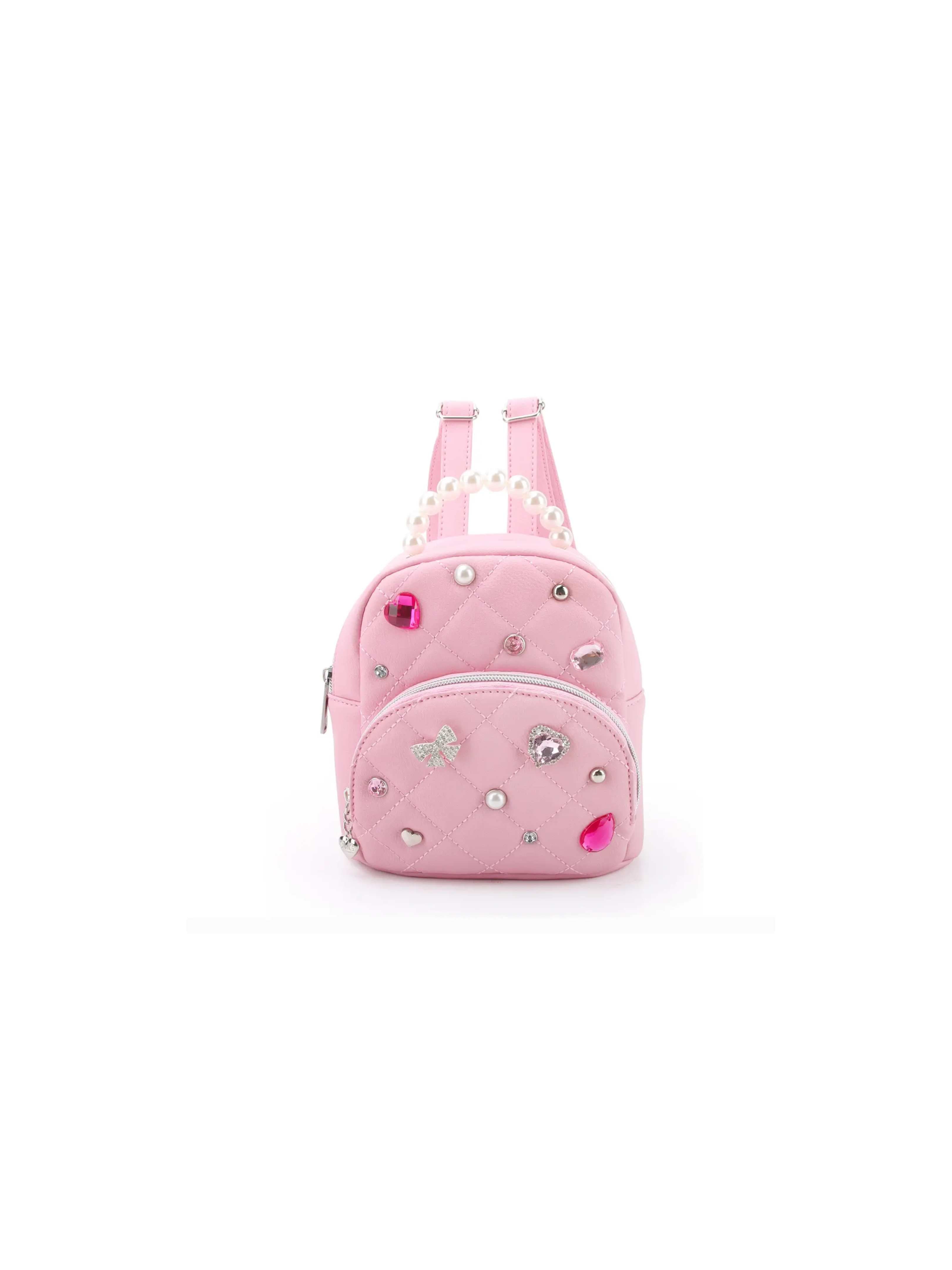 Embellished in large heart and circular rhinestones, this micro mini features adjustable straps for comfortable carrying!