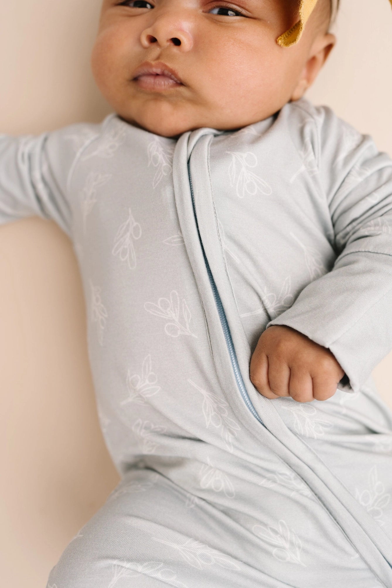 Buttery soft, lightweight, breathable, and stretchy Fold over mittens up to 12-18M Fold over footies Features a 2-way zipper for easier changes Designed with a snug fit for safety