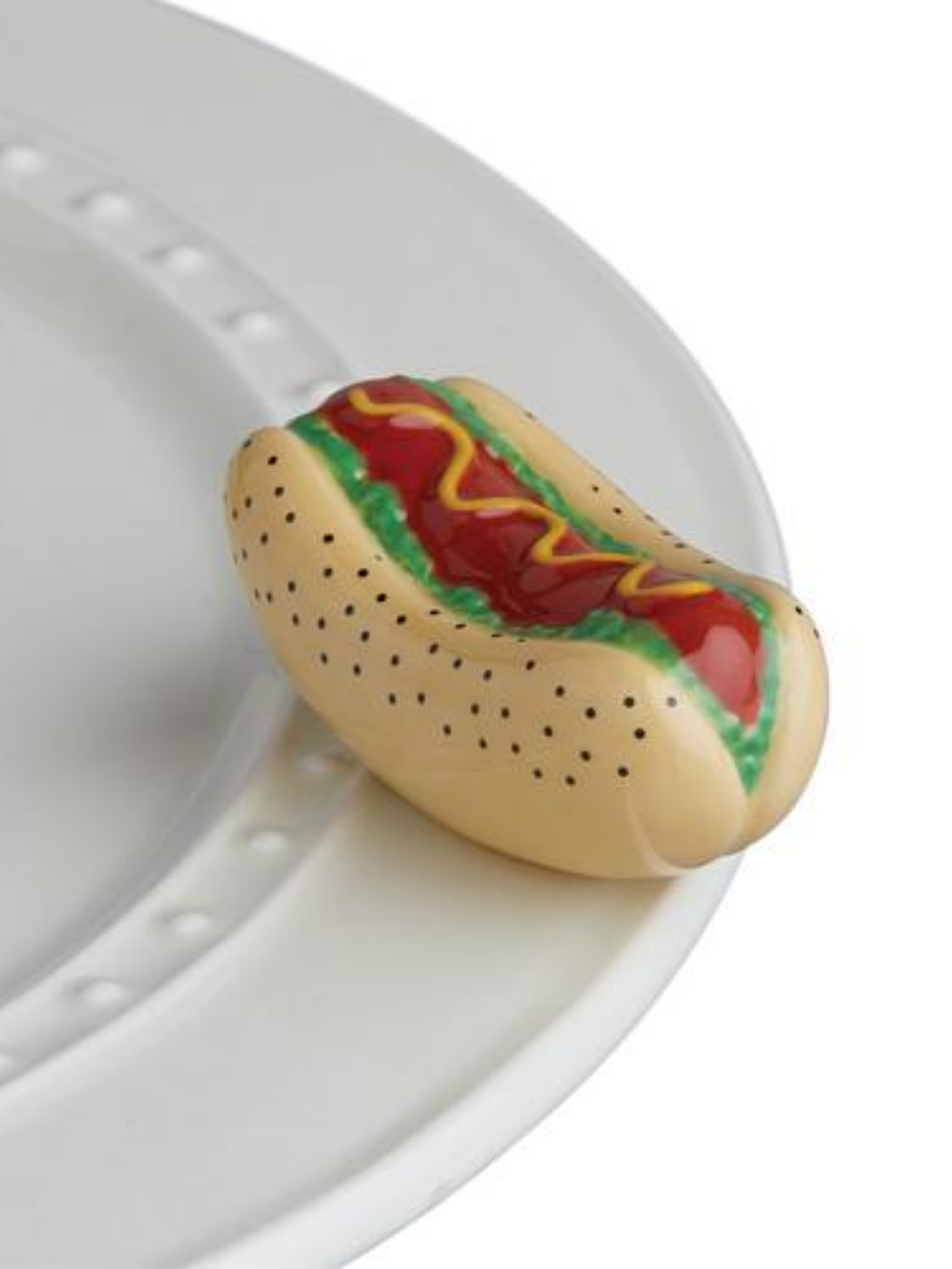 hottt dogggs…get your hot dog mini right here! we’ve added all the right ingredients for the perfect chicago dog…mustard, relish and some nora fleming love!