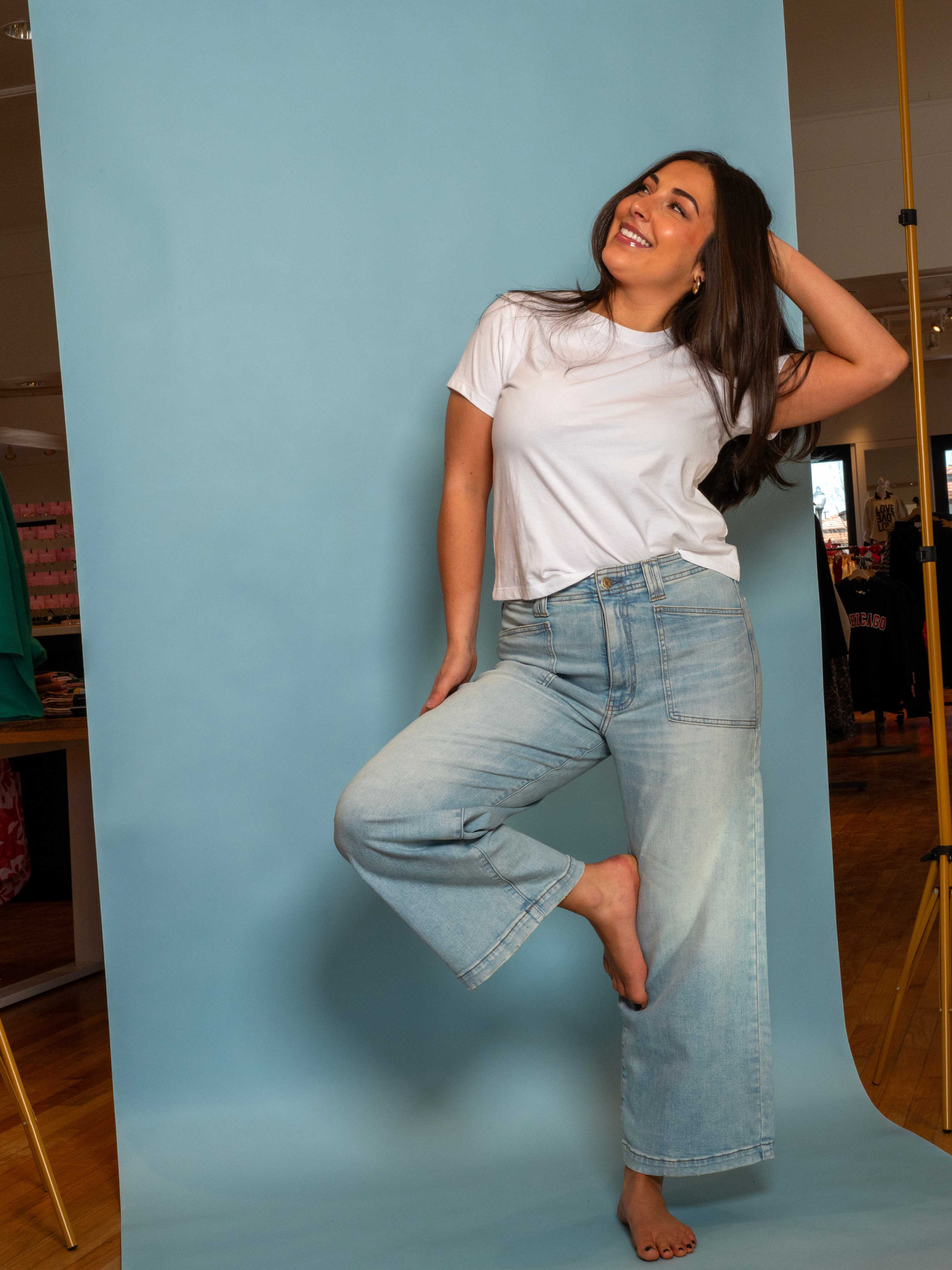 - Inspired by LA's hottest neighborhood, the Valley Girl in Romcom is a high rise wide leg featuring retro-inspired patch pockets and clean hems. This versatile blue jean is constructed from our Just Right fabric, a reliably flattering cotton blend that provides the perfect mix of rigid and stretch.