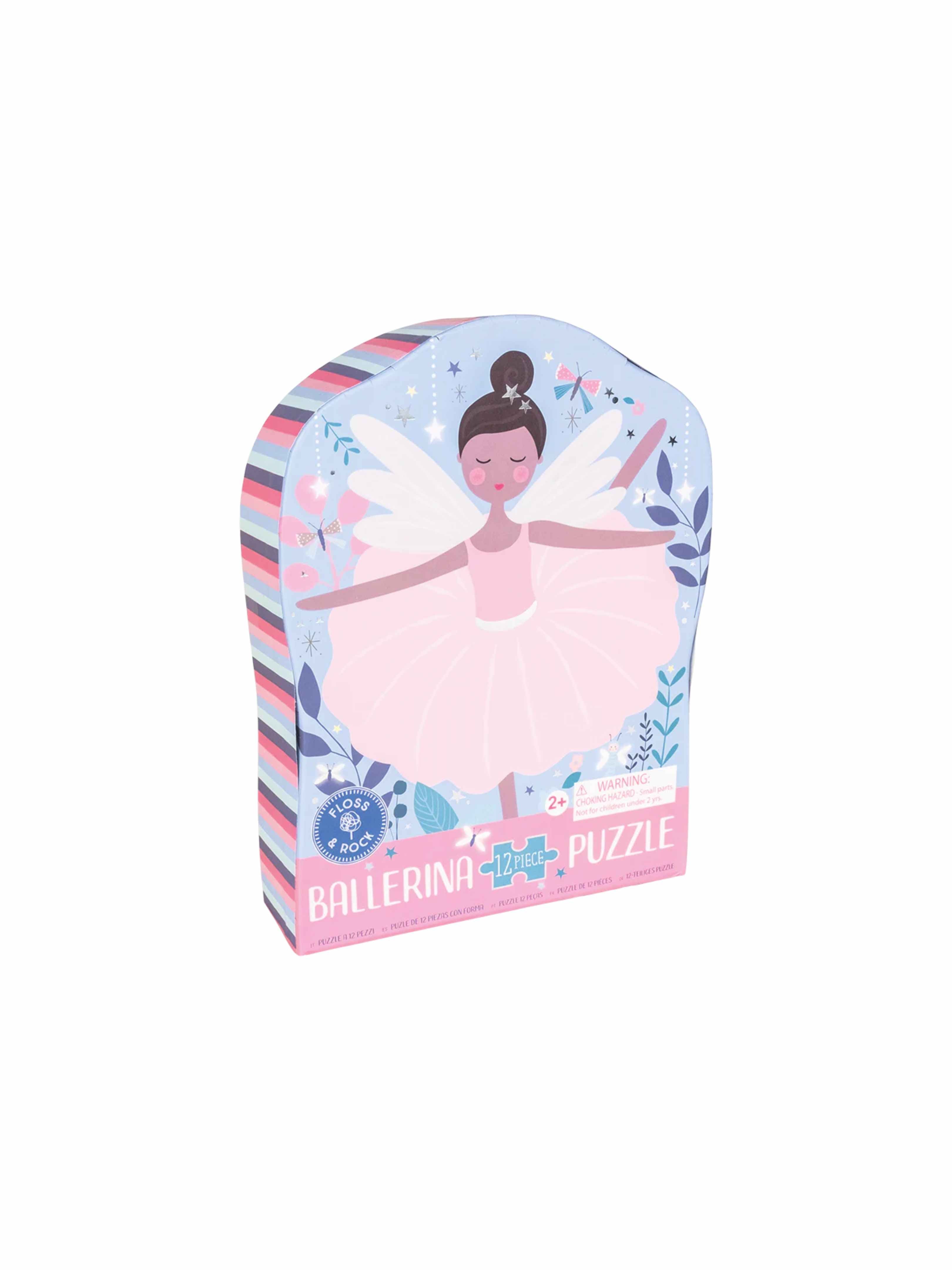 Our Shaped Box contains 12 large size puzzle pieces that make up a beautiful Enchanted Ballerina. Both the box and the puzzle have lovely shiny foiled detail. Great for our puzzle beginners.
