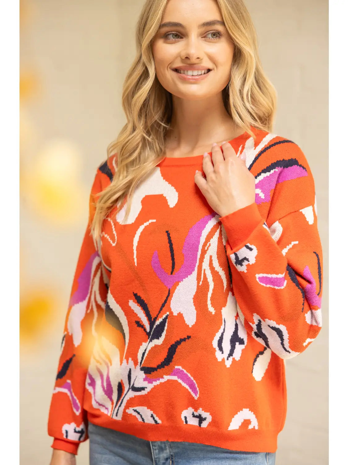 Floral Orange Sweater