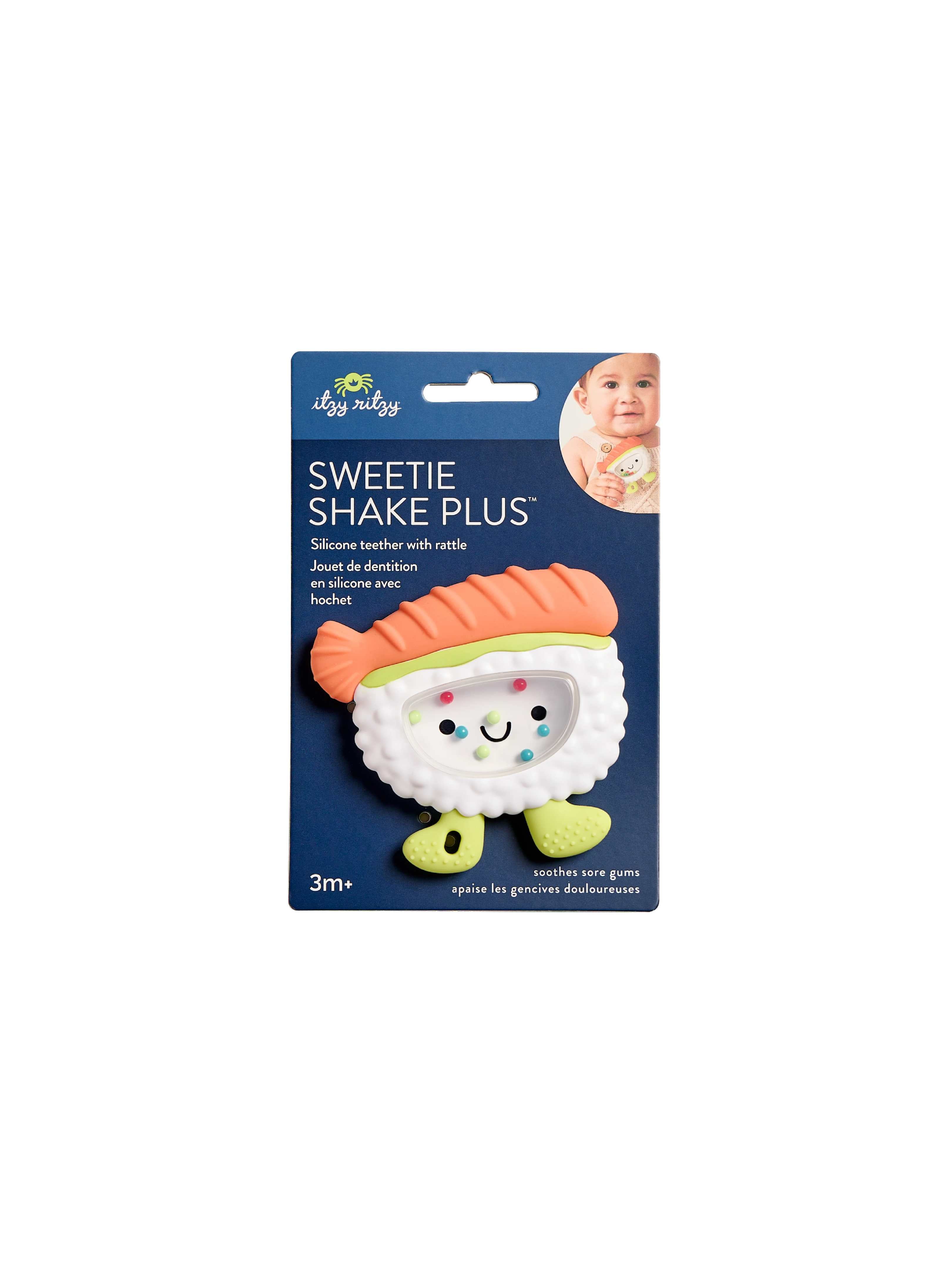 Shake, rattle & teethe! Get ready for triple the fun with the Sweetie Shake Plus™. The soft silicone teether, colorful dancing beads and gentle rattle sounds are perfect for sensory seekers tiny to toddler.