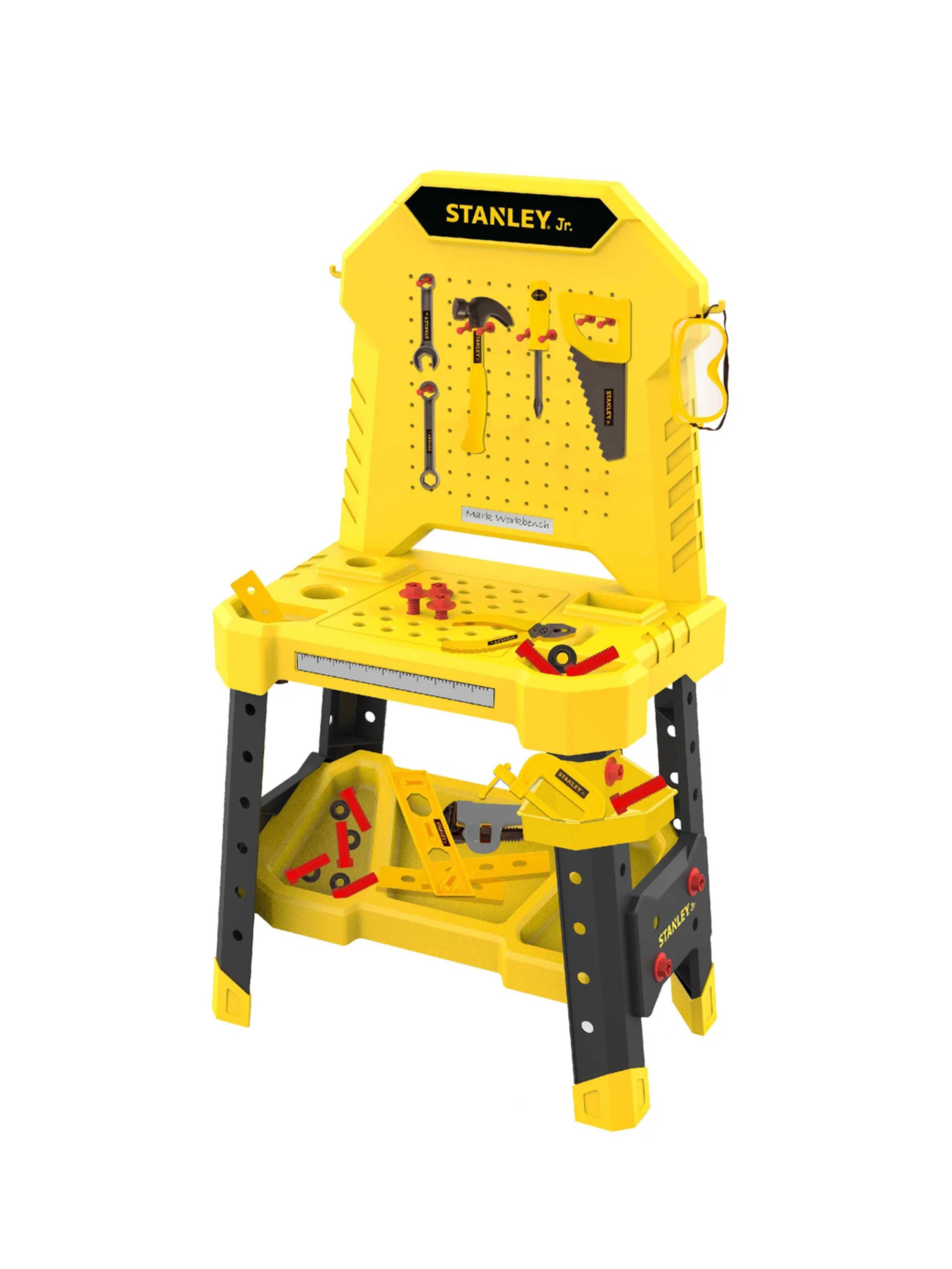 - Get ready to hammer down on fun with this plastic toy workbench that will have your little ones building and creating all day long! No splinters, no problem - this safe and durable playset is perfect for your budding DIYers! The Stanley Jr. Pretend Play Workbench & Power Drill & Toolset includes 140 PCS.