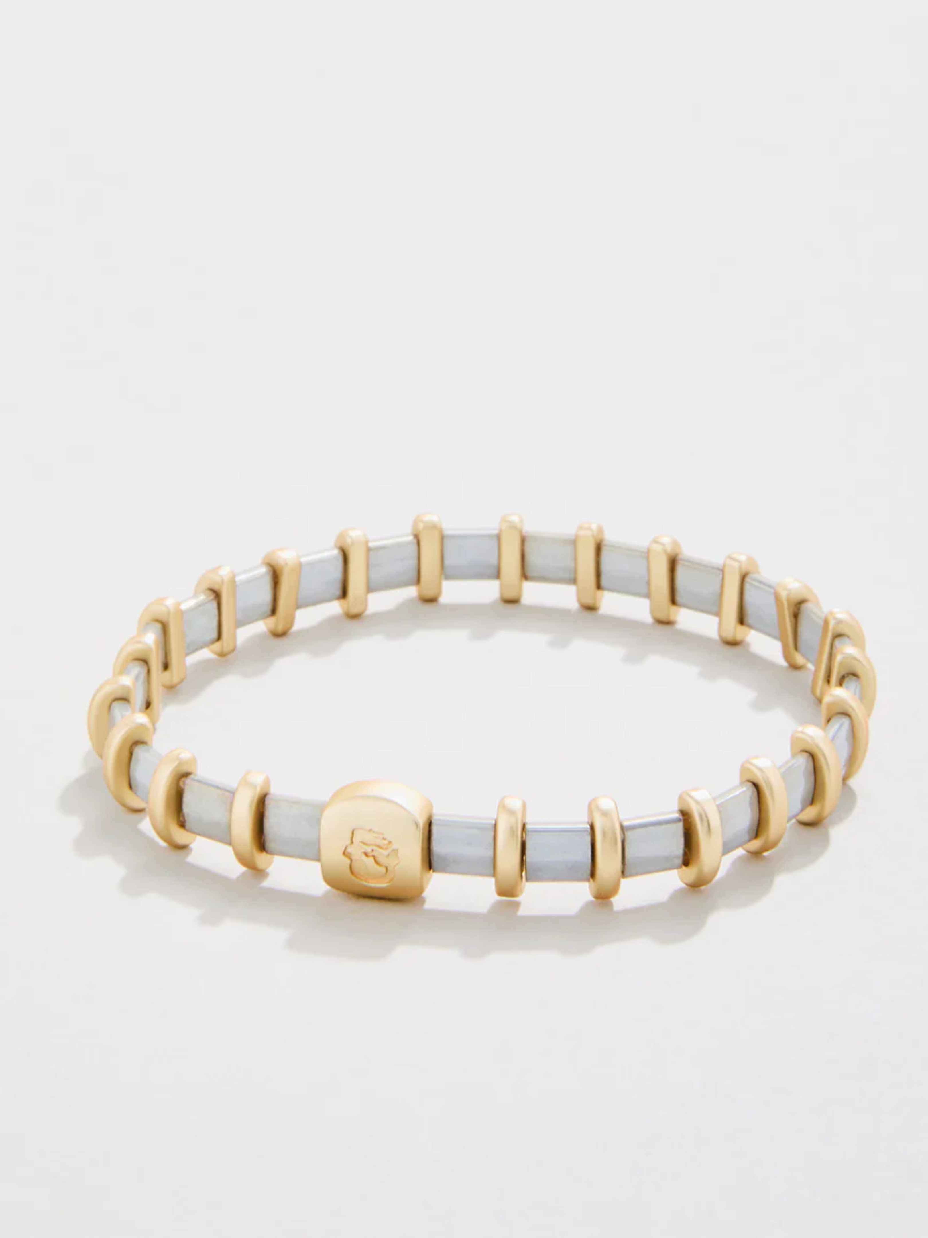 Shimmering beads lined with golden bars our Lila Stretch Bracelets are a must have for all of your bracelet stacks. Easy on, our stretch bracelets are ready to fit any wrist and look even better together.