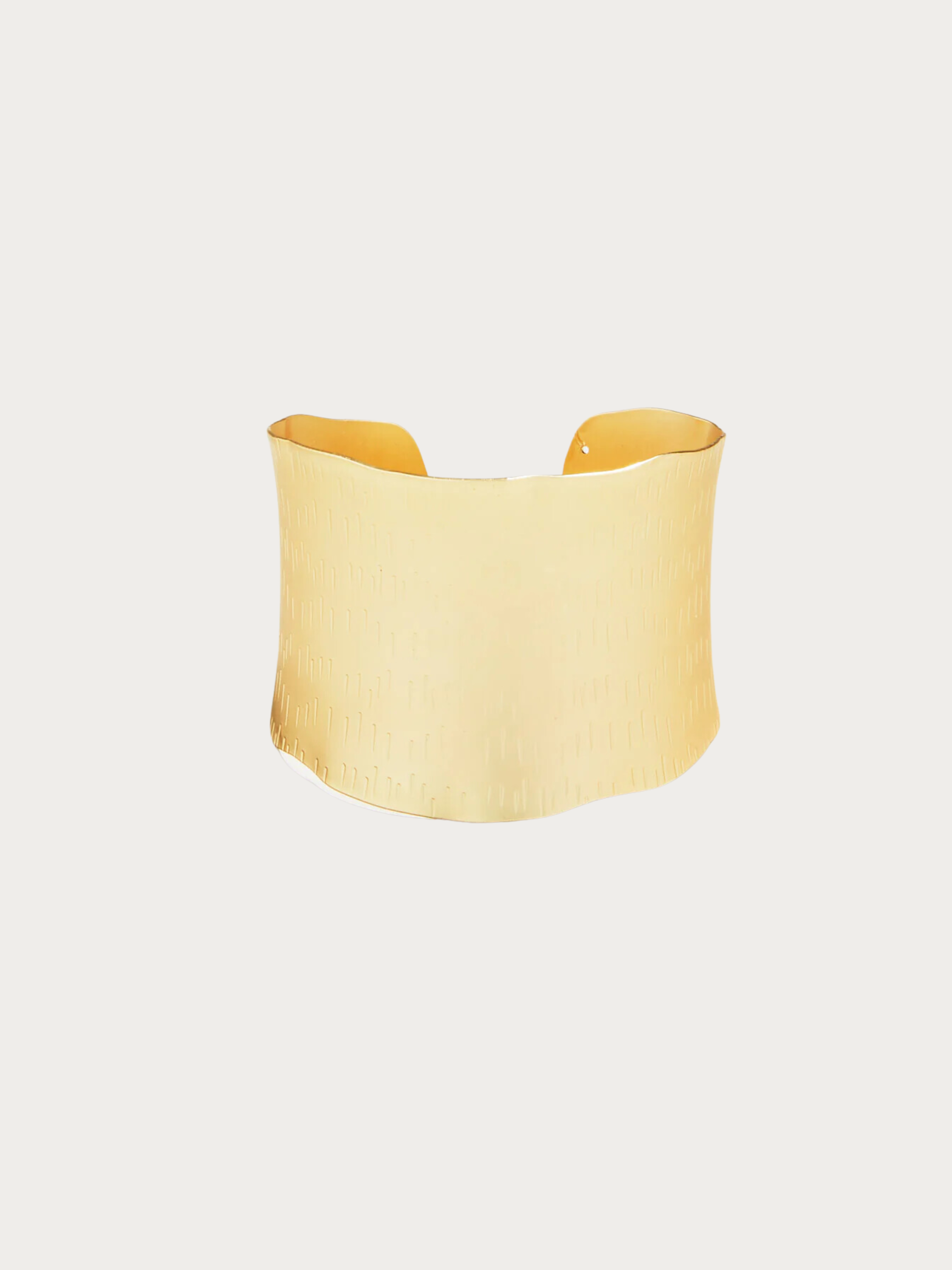 Make a splash in this 18kt matte gold plated textured beauty! Inspired by a tropical vacation, you'll reach for this Queenie Cuff over and over again.